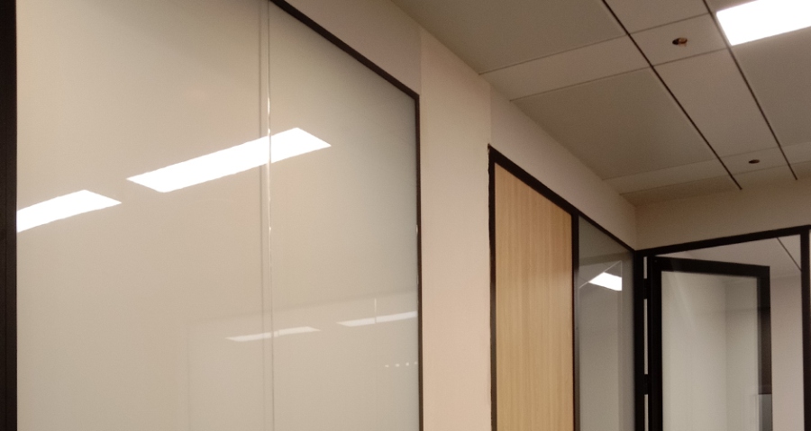 在办公楼、酒店客房或高端家居设计中,很多用户都希望实现“透明—磨砂”自由切换的效果。调光玻璃利用液晶膜通电与断电的变化,能在瞬间完成隐私与采光的切换。